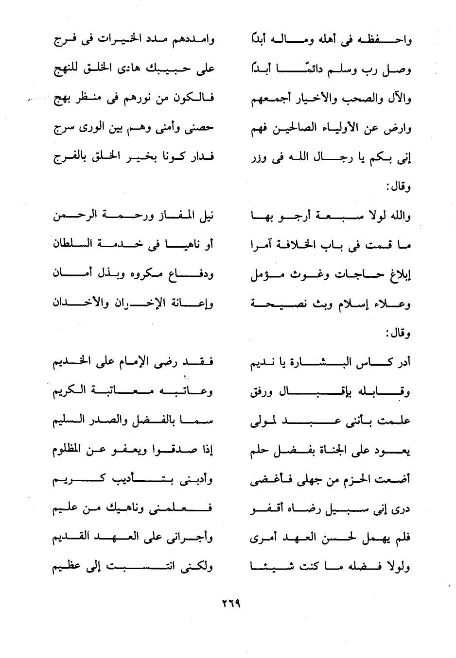 وارض عن الأولياء الصالحين فهم ... حصنى وأمنى وهم بين الورى سرج