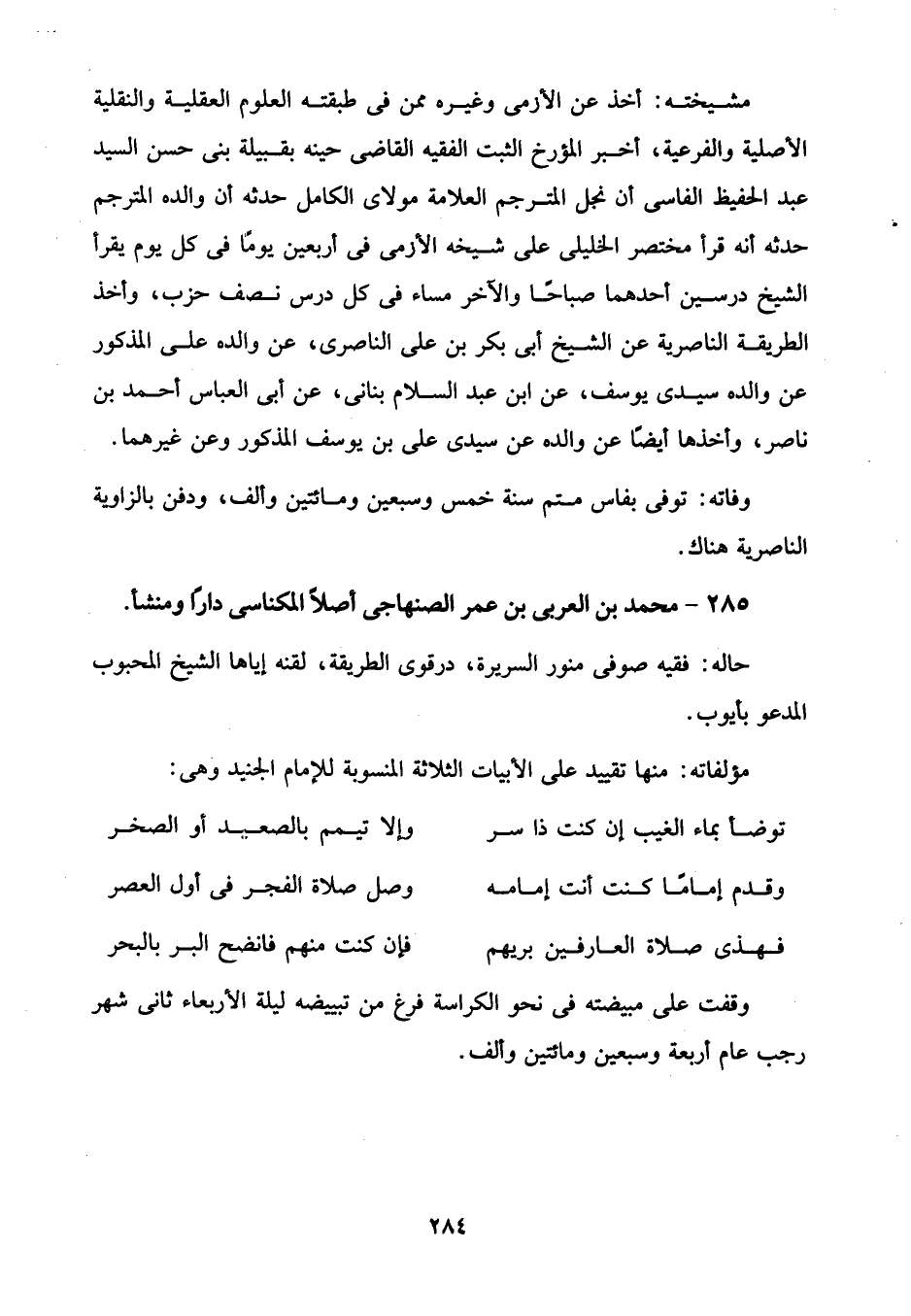 285 - محمد بن العربى بن عمر الصنهاجى أصلاً المكناسى داراً ومنشأ.