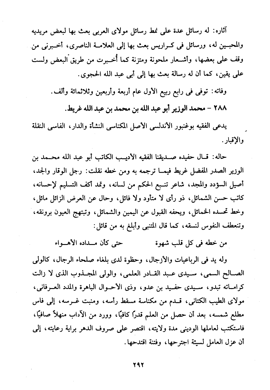 288 - محمد الوزير أبو عبد الله بن محمد بن عبد الله غريط.