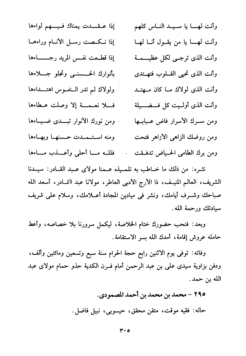 وبعد: فنحب حضورك ختام الخلاصة، ليكمل سرورنا بلا خصاصه، وأعط حامله عروش إقامة، أمدك الله بسر الاستقامة.