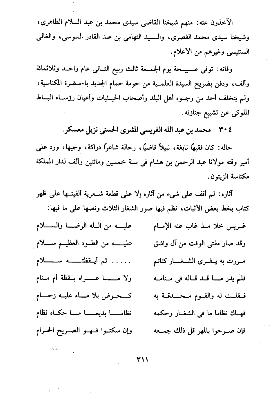 304 - محمد بن عبد الله الغريسى المشرى الحسنى نزيل معسكر.