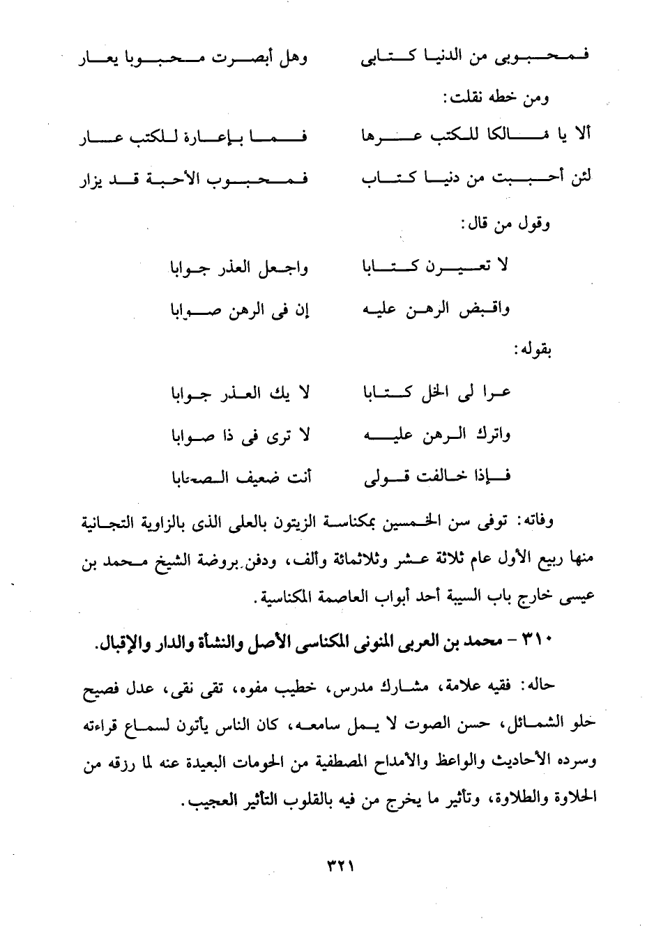 310 - محمد بن العربى المنونى المكناسى الأصل والنشأة والدار والإقبال.