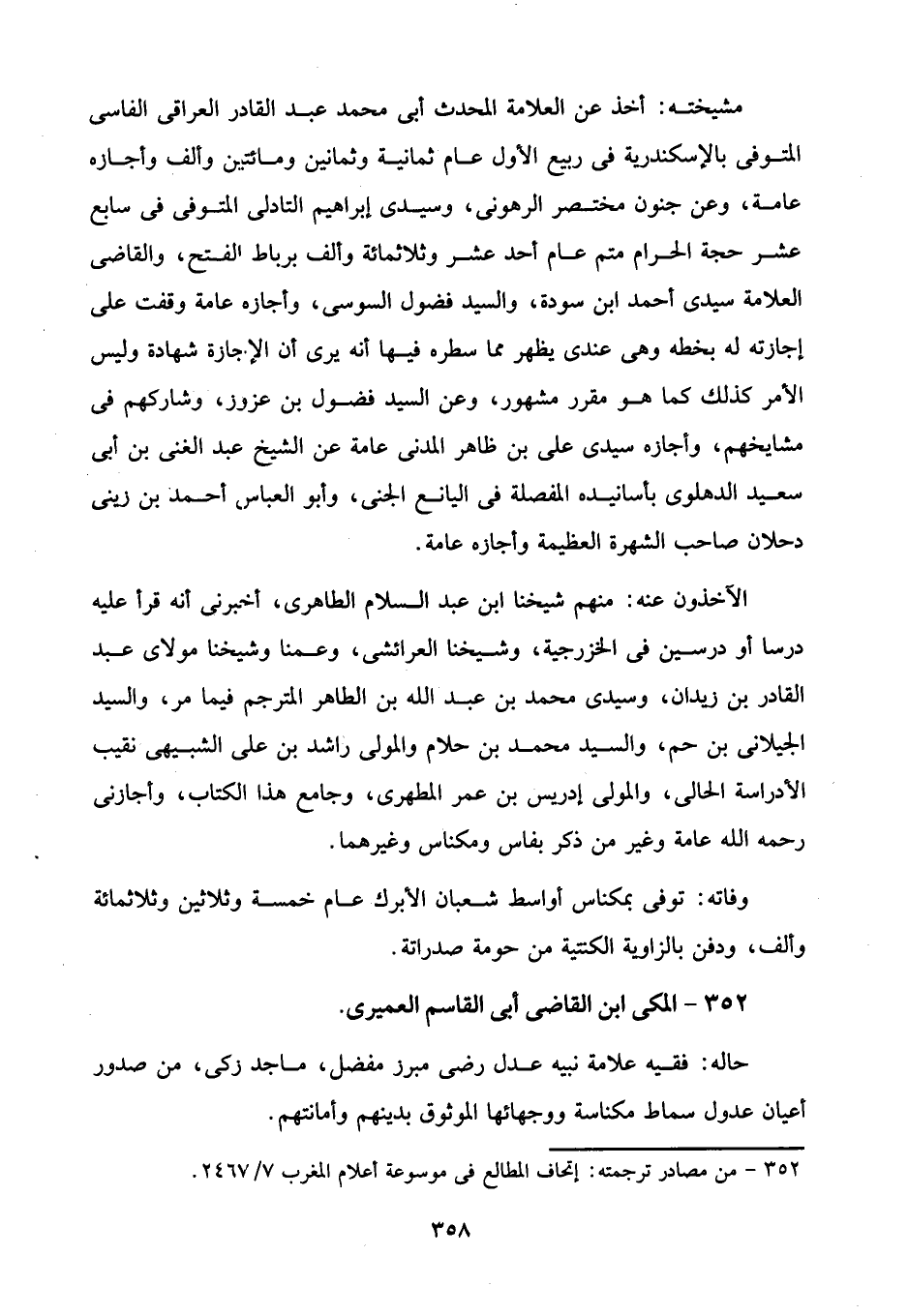 352 - من مصادر ترجمته: إتحاف المطالع في موسوعة أعلام المغرب 7/ 2467.