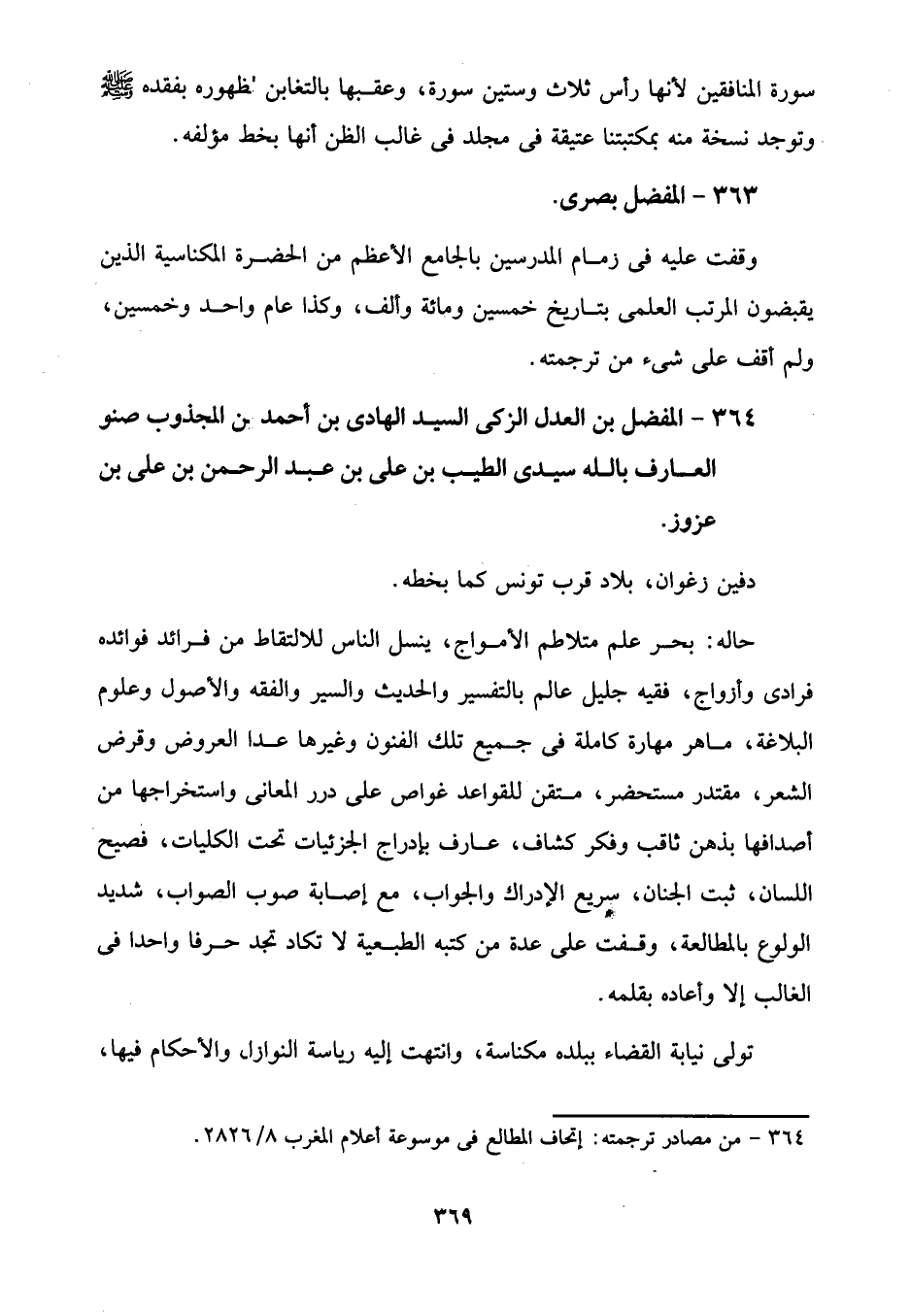 364 - من مصادر ترجمته: إتحاف المطالع في موسوعة أعلام المغرب 8/ 2826.