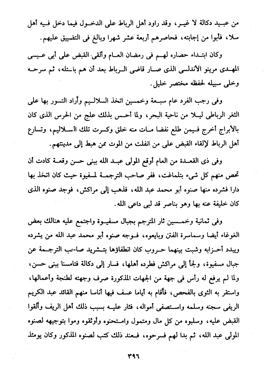 من عبيد دكالة لا غير، وقد راود أهل الرباط على الدخول فيما دخل فيه أهل سلا، فأبوا من إجابته، فحاصرهم أربعة عشر شهرًا وبالغ في التضييق عليهم.