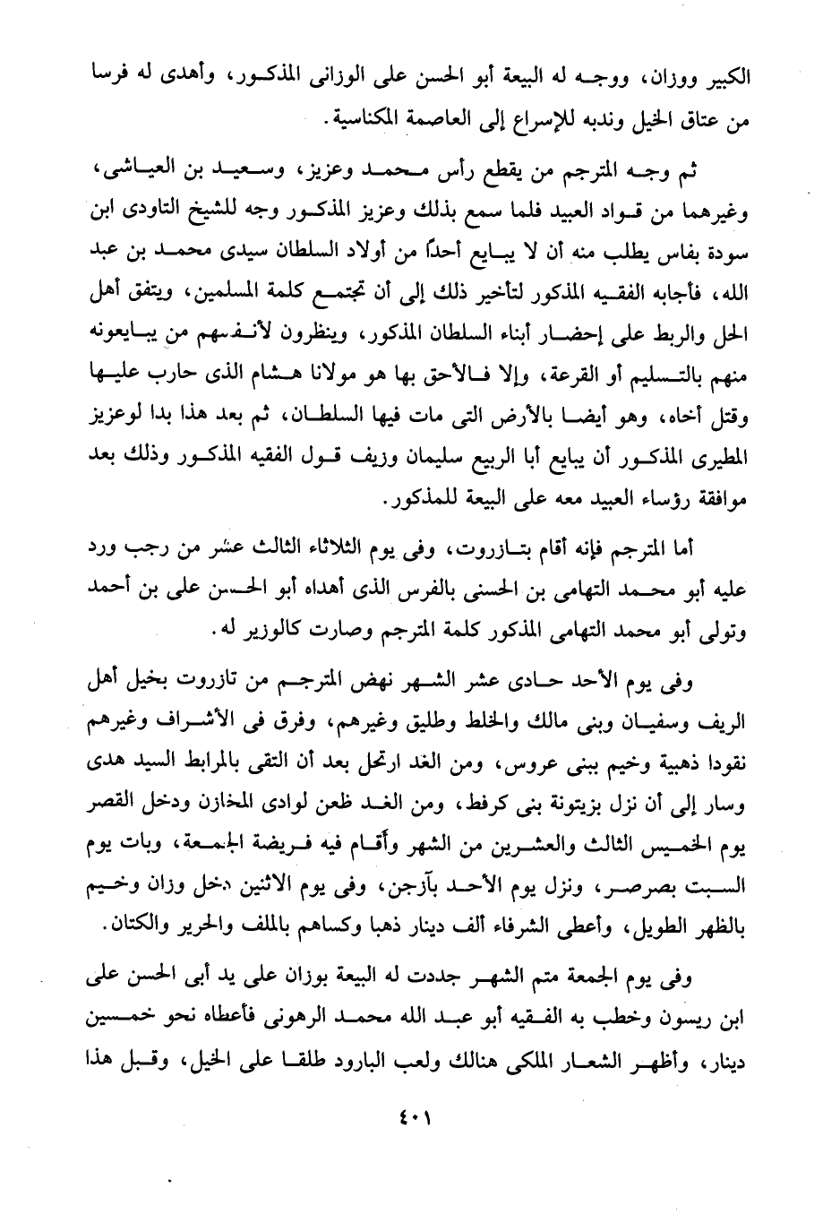 الكبير ووزان، ووجه له البيعة أبو الحسن على الوزانى المذكور، وأهدى له فرسًا من عتاق الخيل وندبه للإسراع إلى العاصمة المكناسية.
