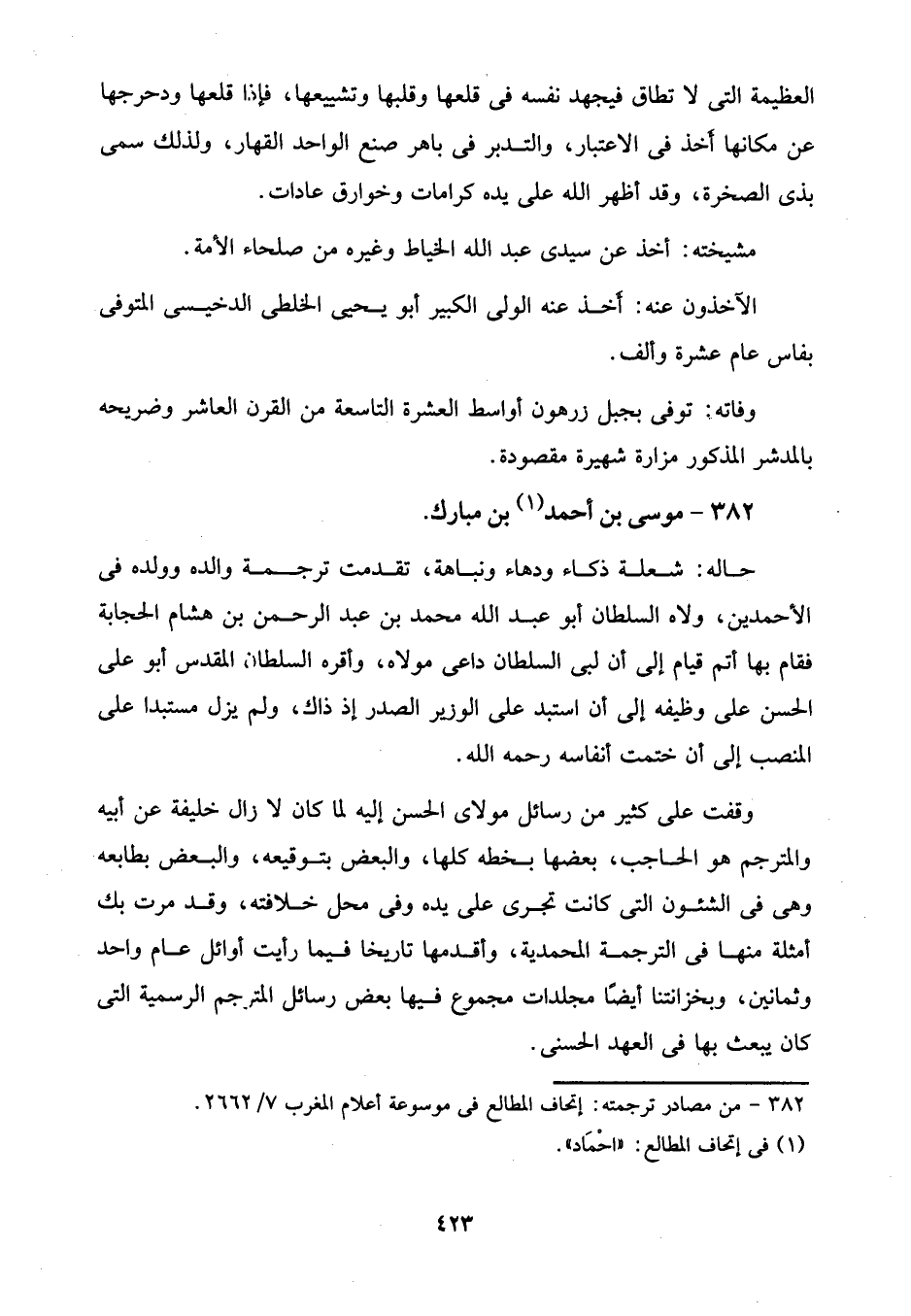 382 - من مصادر ترجمته: إتحاف المطالع في موسوعة أعلام المغرب 7/ 2662.