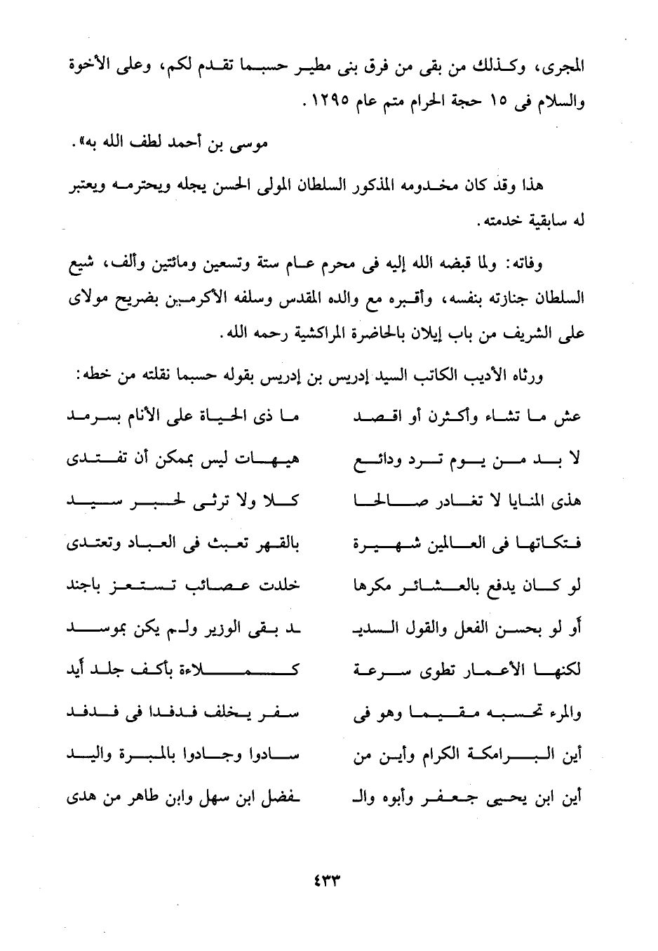 ورثاه الأديب الكاتب السيد إدريس بن إدريس بقوله حسبما نقلته من خطه:
