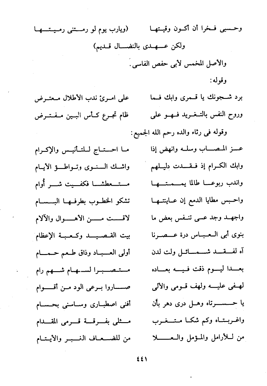 برد شجونك يا قمرى وابك فما ... على امرئ ندب الأطلال معترض