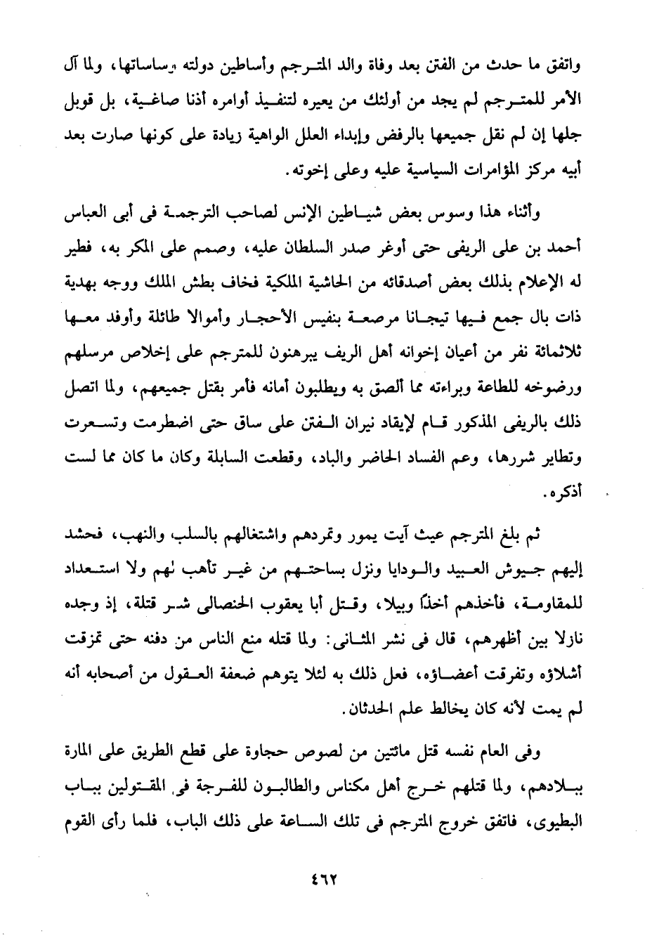 واتفق ما حدث من الفتن بعد وفاة والد المترجم وأساطين دولته وساساتها، ولما آل الأمر للمترجم لم يجد من أولئك من يعيره لتنفيذ أوامره أذنا صاغية، بل قوبل جلها إن لم نقل جميعها بالرفض وإبداء العلل الواهية زيادة على كونها صارت بعد أبيه مركز المؤامرات السياسية عليه وعلى إخوته.