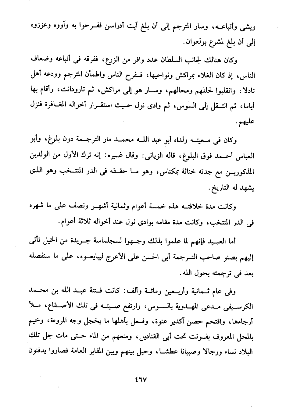 أما العبيد فإنهم لما علموا بذلك وجهوا لسجلماسة جريدة من الخيل تأتى إليهم بصنو صاحب الترجمة أبي الحسن على الأعرج ليبايعوه، على ما سنفصله بعد في ترجمته بحول الله.