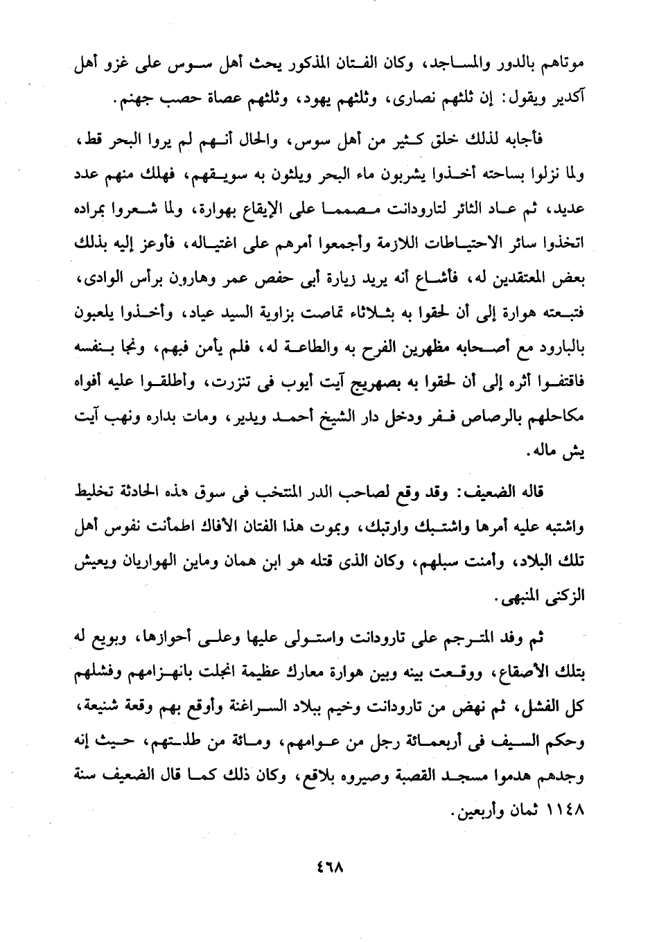 موتاهم بالدور والمساجد، وكان الفتان المذكور يحث أهل سوس على غزو أهل آكدير ويقول: إن ثلثهم نصارى، وثلثهم يهود، وثلثهم عصاة حصب جهنم.