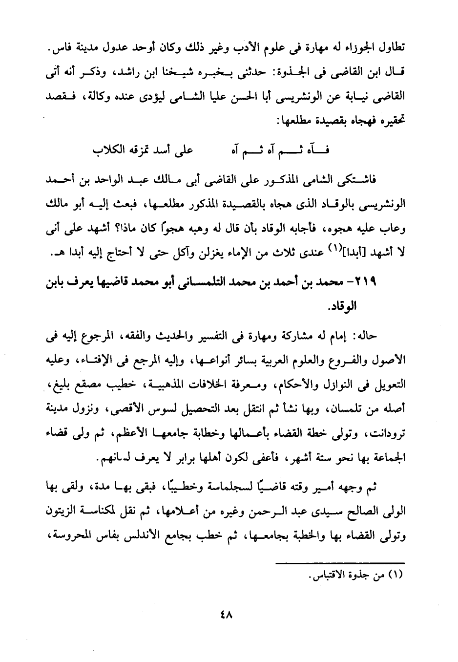 219 - محمد بن أحمد بن محمد التلمسانى أبو محمد قاضيها يعرف بابن الوقاد.