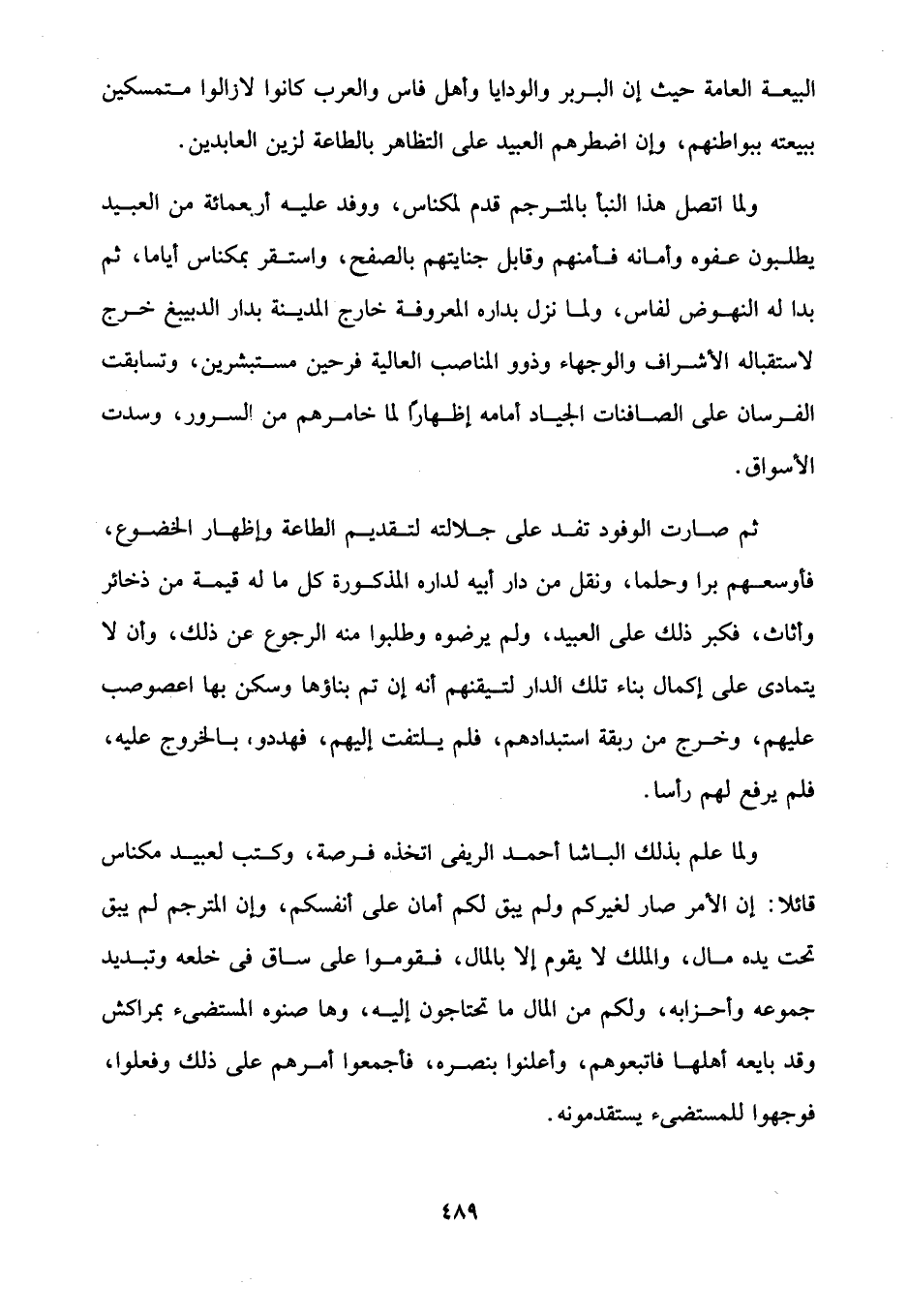 البيعة العامة حيث إن البربر والودايا وأهل فاس والعرب كانوا لازالوا متمسكين ببيعته ببواطنهم، وإن اضطرهم العبيد على التظاهر بالطاعة لزين العابدين.