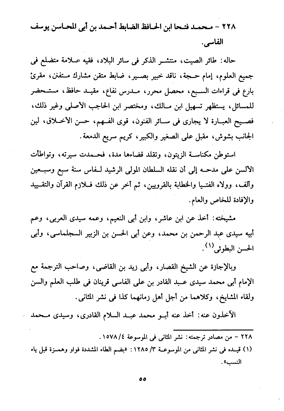 228 - محمد فتحا ابن الحافظ الضابط أحمد بن أبى المحاسن يوسف الفاسى.