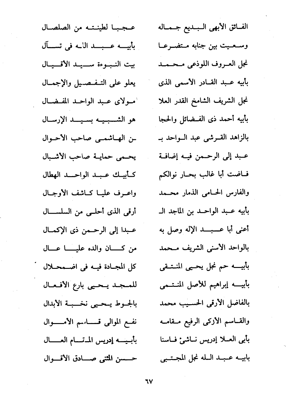 نجل الشريف الشامخ القدر العلا ... مولاى عبد الواحد المفضال
