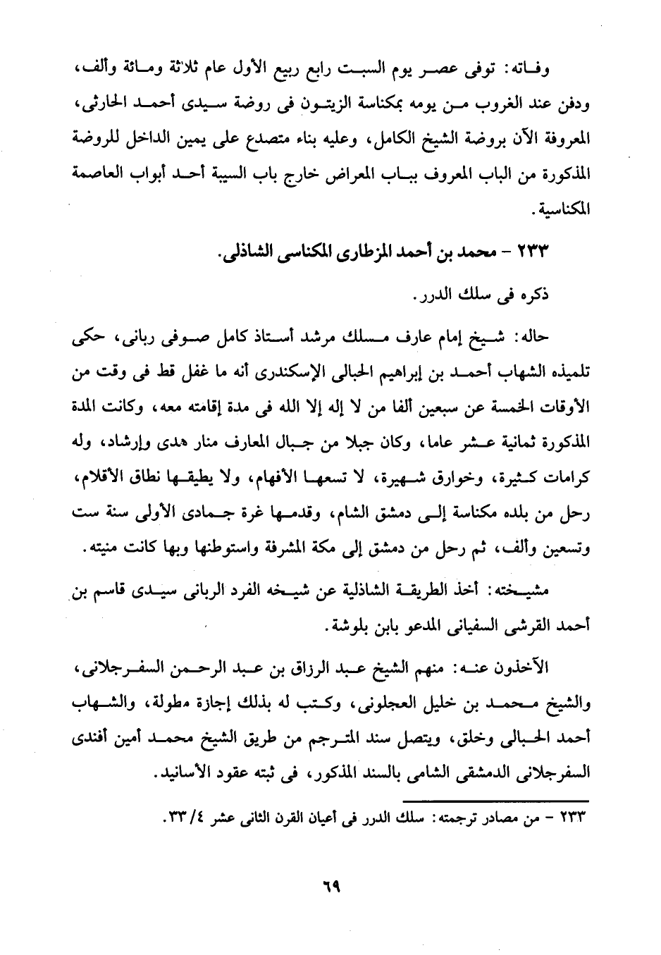 233 - محمد بن أحمد المزطارى المكناسى الشاذلى.
