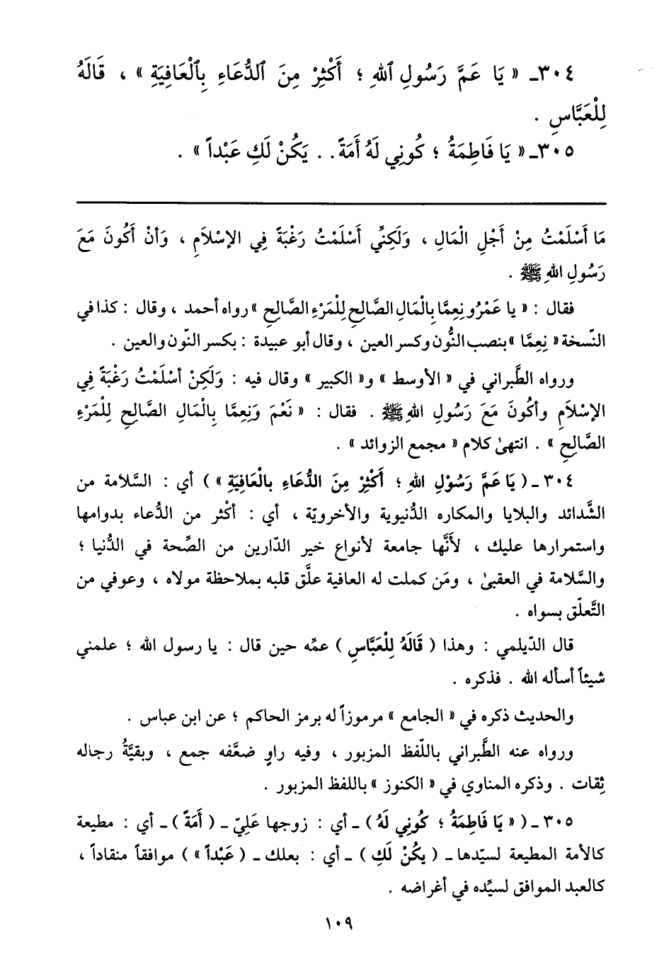 304- «يا عمّ رسول الله؛ أكثر من الدّعاء بالعافية» ، قاله للعبّاس.