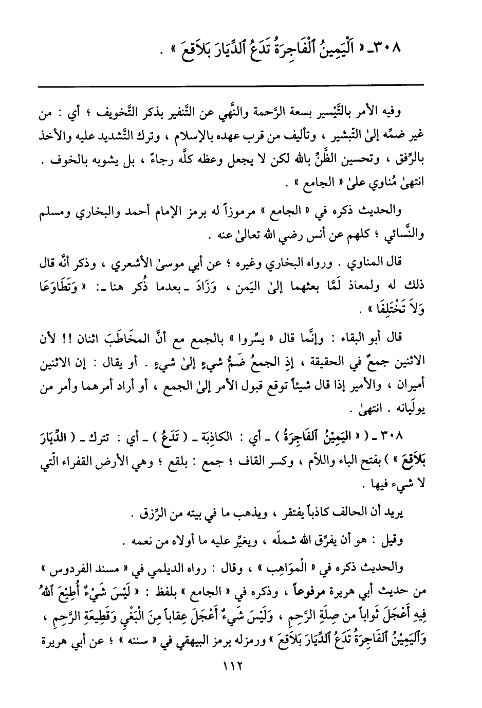 308- «اليمين الفاجرة تدع الدّيار بلاقع» .