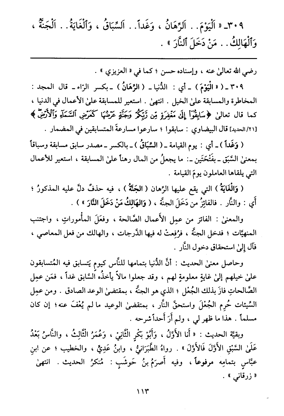 309- «اليوم.. الرّهان، وغدا.. السّباق، والغاية.. الجنّة، والهالك.. من دخل النّار» .