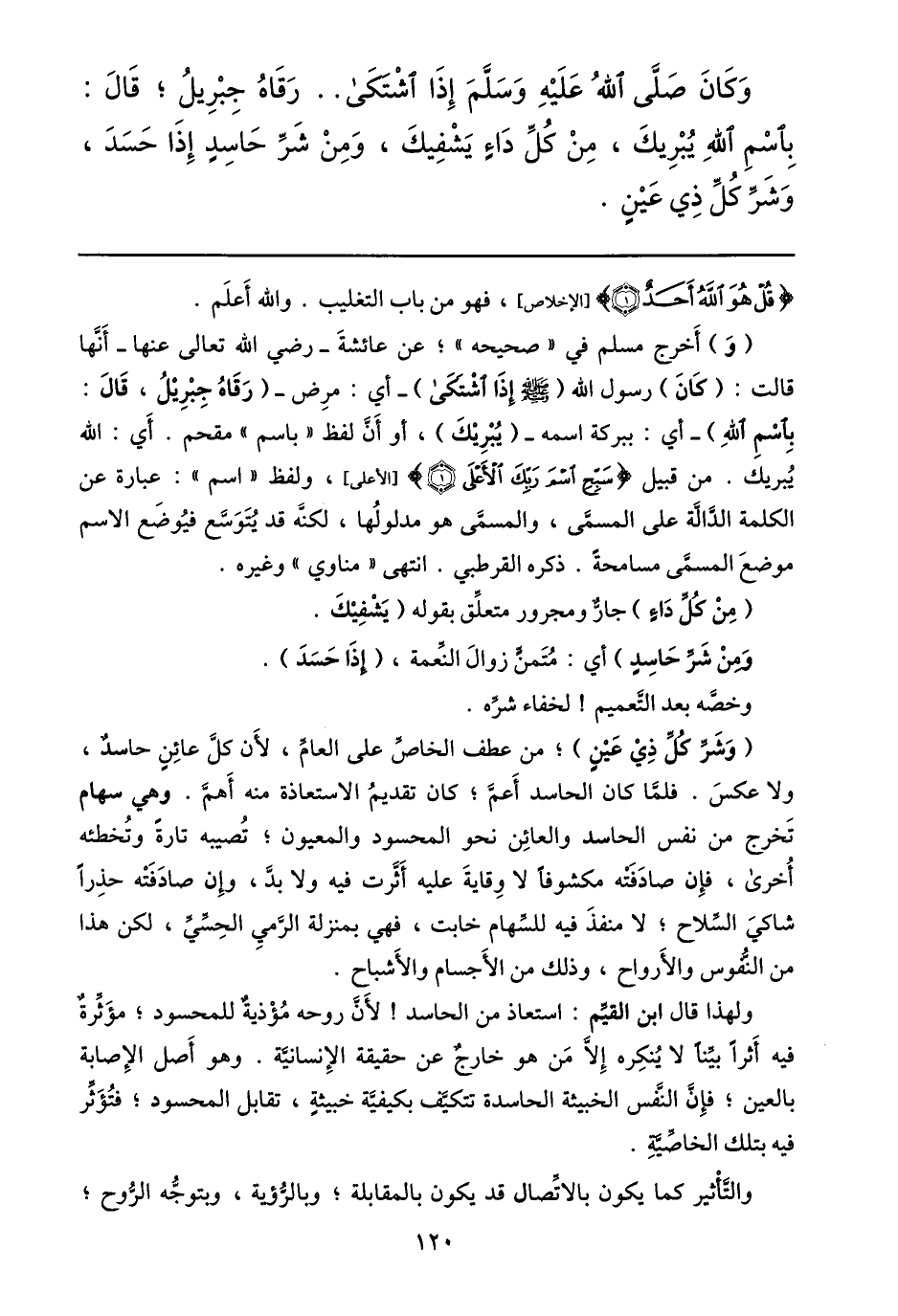 وكان صلّى الله عليه وسلّم إذا اشتكى.. رقاه جبريل؛ قال: