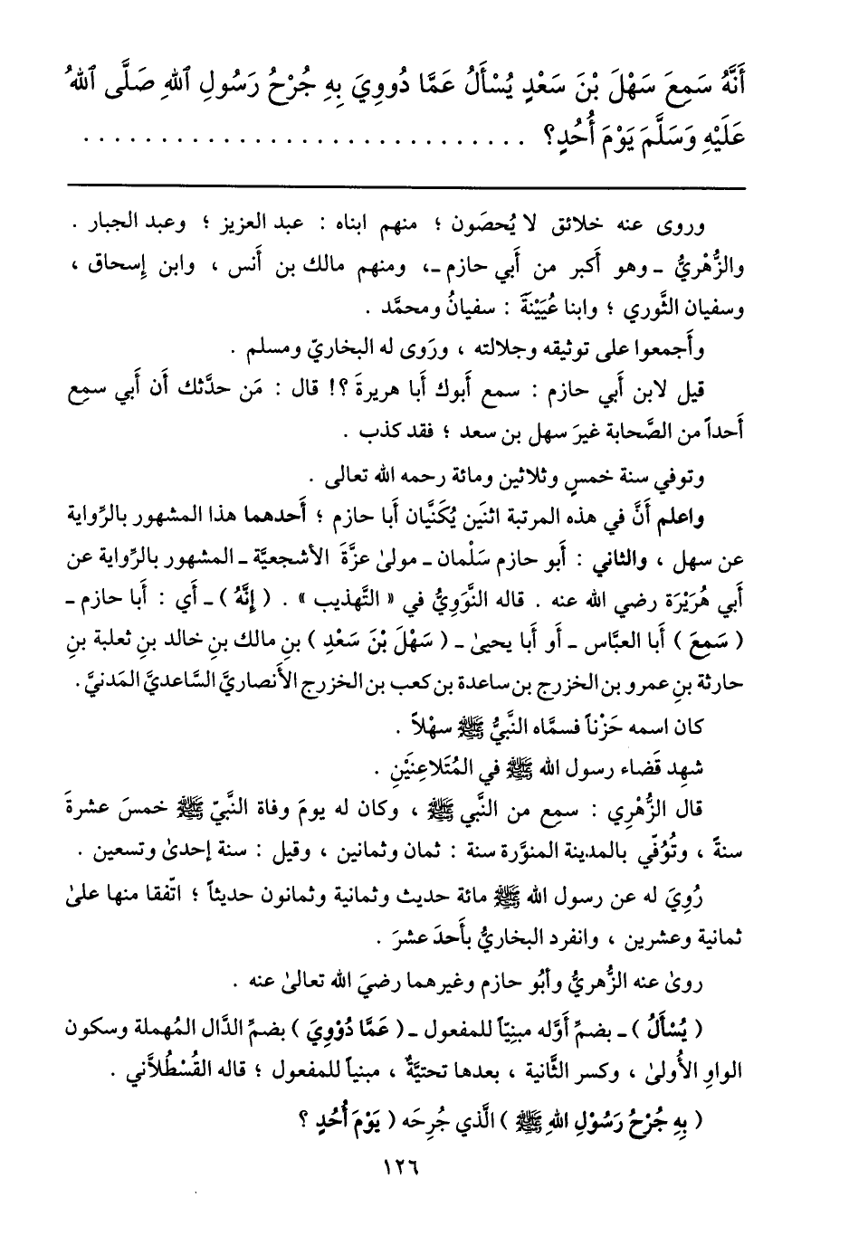 أنّه سمع سهل بن سعد يسأل عمّا دووي به جرح رسول الله صلّى الله عليه وسلّم يوم أحد؟ ...