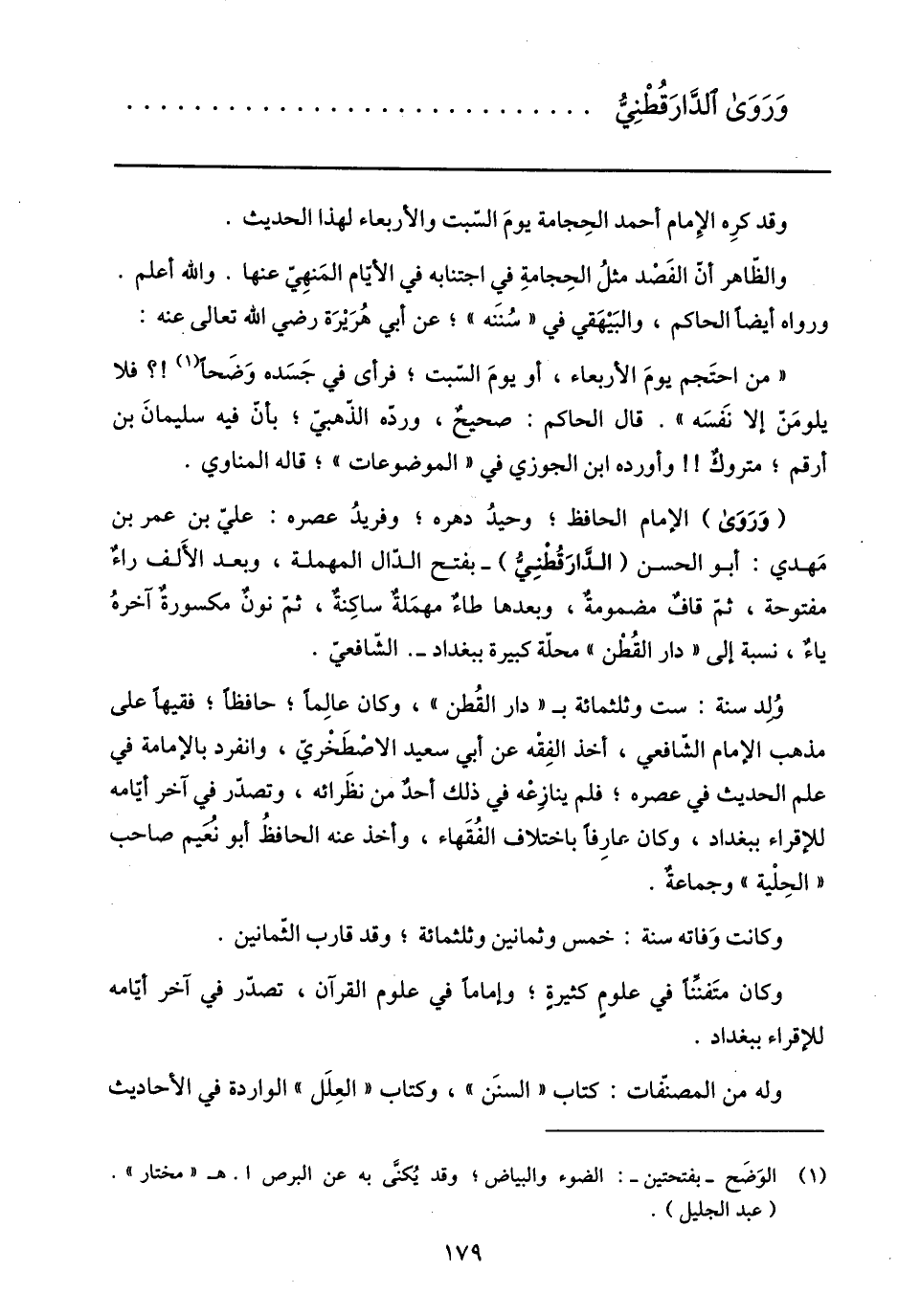 (وروى) الإمام الحافظ؛ وحيد دهره؛ وفريد عصره: عليّ بن عمر بن مهدي: أبو الحسن (الدّارقطنيّ) - بفتح الدّال المهملة، وبعد الألف راء مفتوحة، ثمّ قاف مضمومة، وبعدها طاء مهملة ساكنة، ثمّ نون مكسورة آخره ياء، نسبة إلى «دار القطن» محلّة كبيرة ببغداد-. الشّافعيّ.