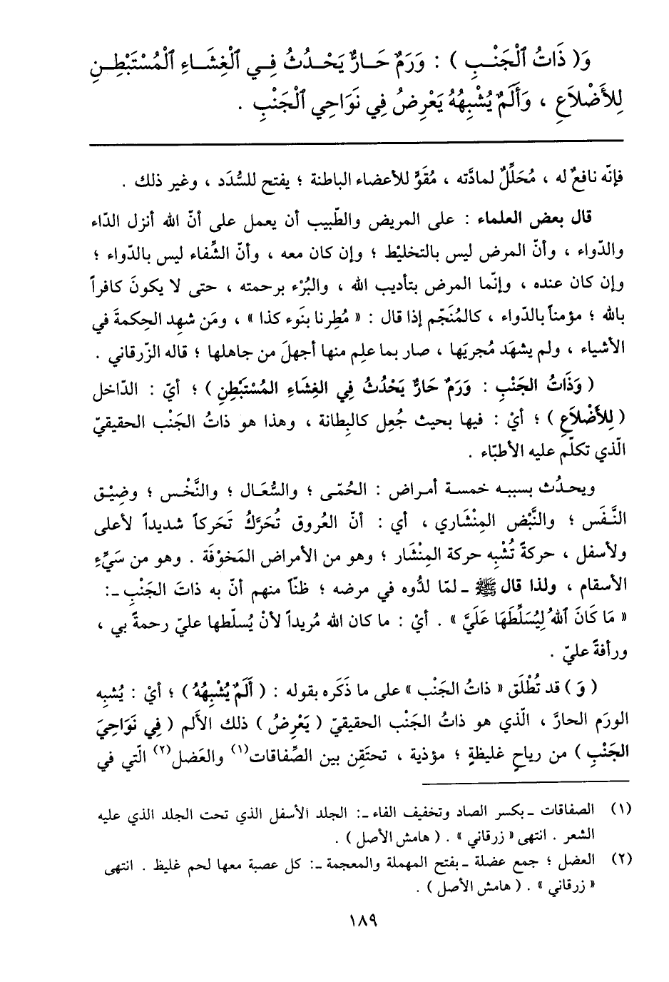 (1) الصفاقات- بكسر الصاد وتخفيف الفاء-: الجلد الأسفل الذي تحت الجلد الذي عليه الشعر. انتهى «زرقاني» . (هامش الأصل) .