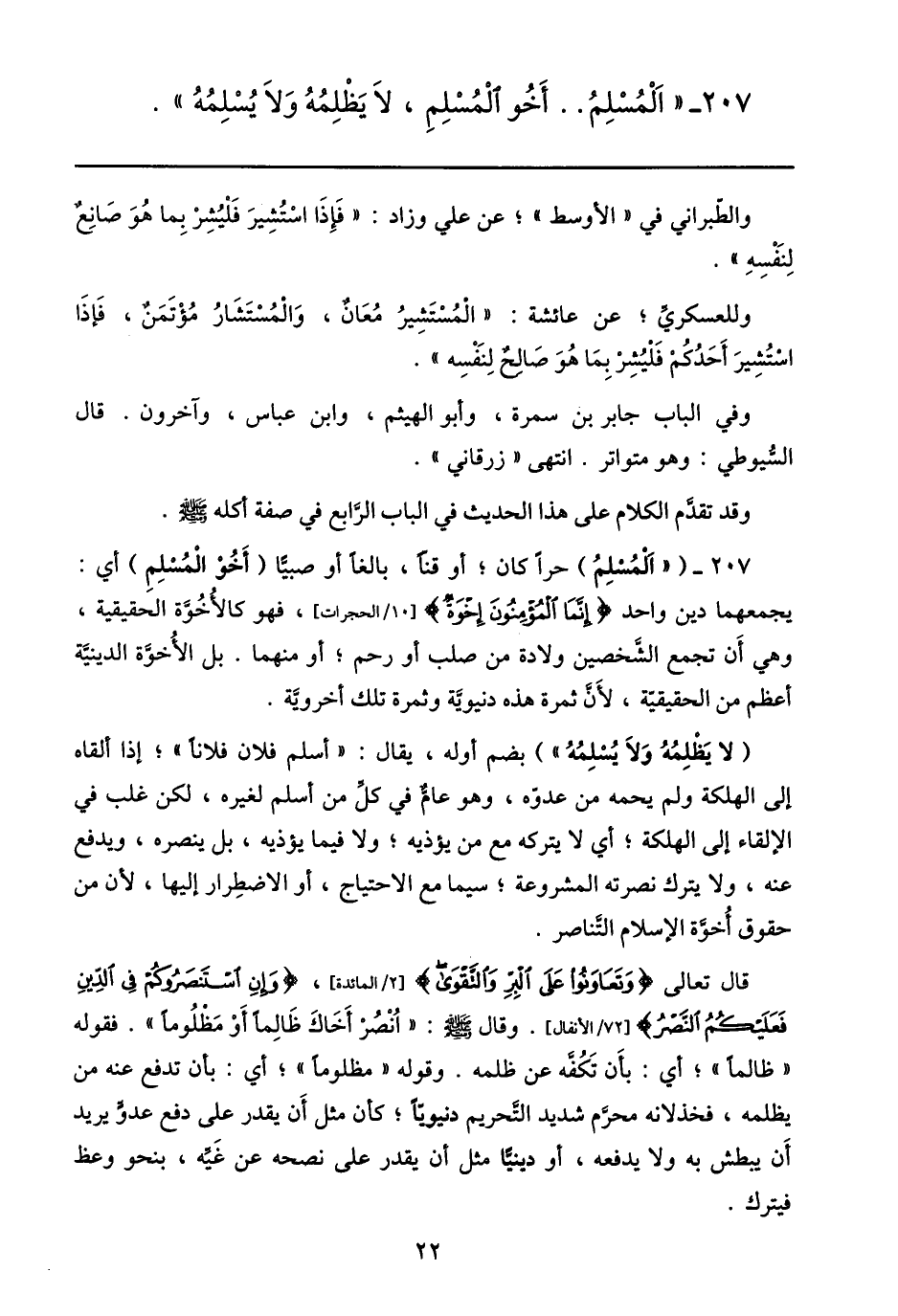 207- «المسلم.. أخو المسلم، لا يظلمه ولا يسلمه» .