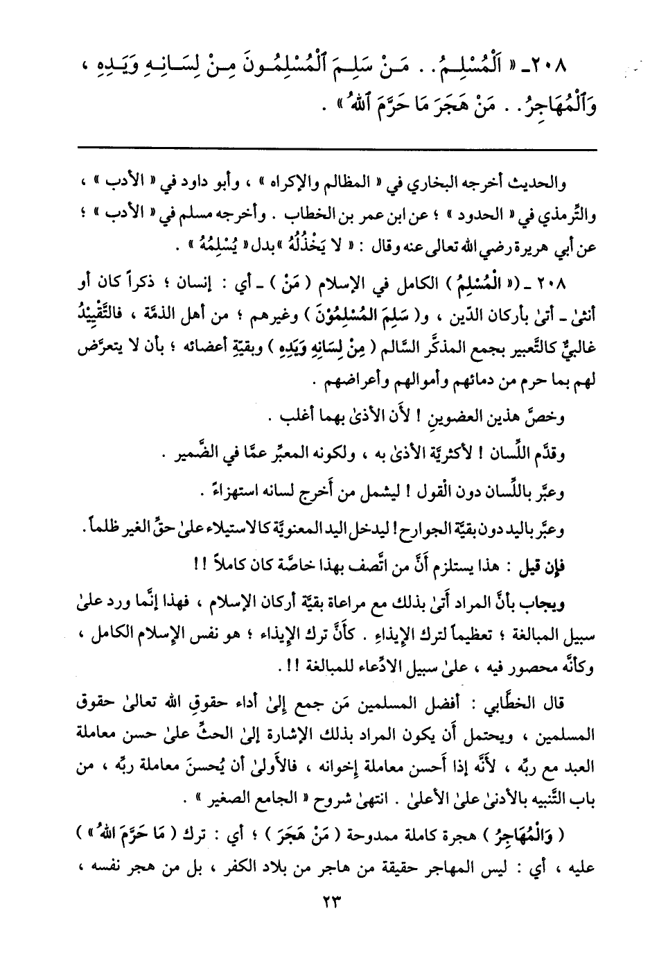 208- «المسلم.. من سلم المسلمون من لسانه ويده، والمهاجر.. من هجر ما حرّم الله» .