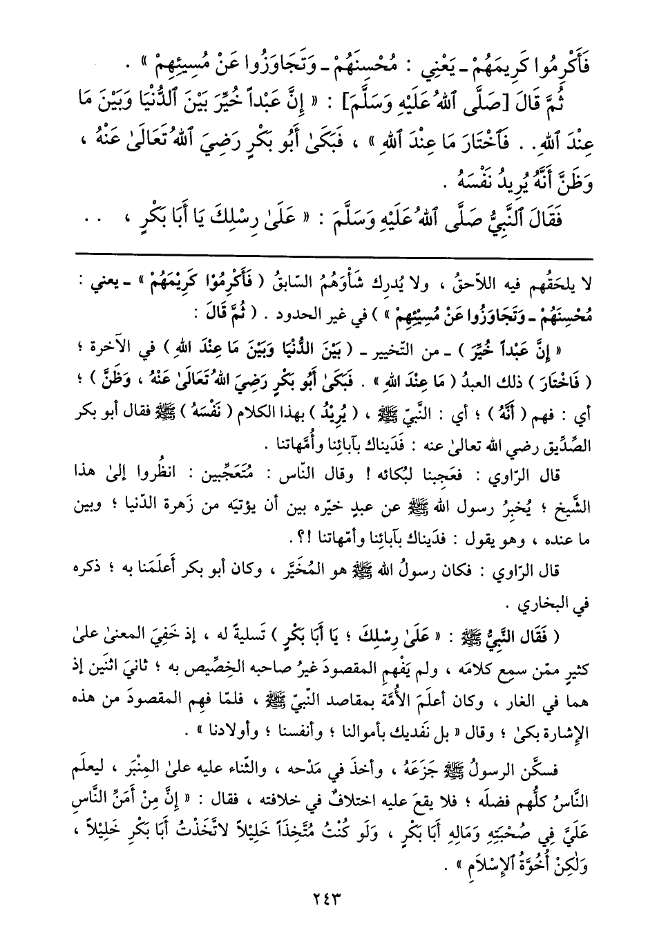 فقال النّبيّ صلّى الله عليه وسلّم: «على رسلك يا أبا بكر،..