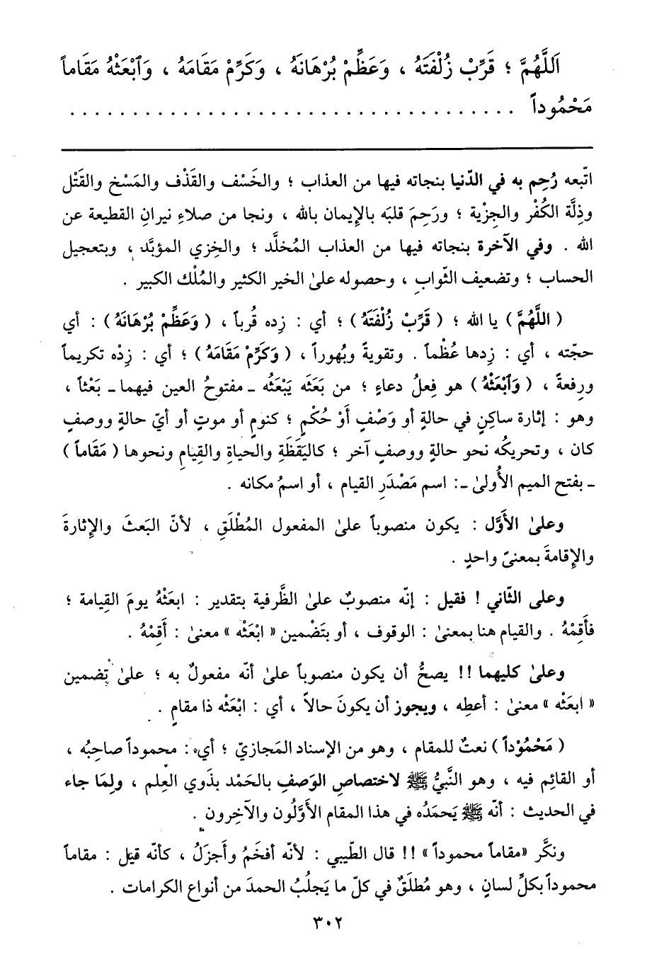 اللهمّ؛ قرّب زلفته، وعظّم برهانه، وكرّم مقامه، وابعثه مقاما محمودا ...