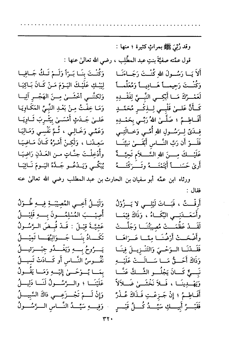 أفاطم؛ صلّى الله ربّي بحمده ... على جدث أمسى بيثرب ثاويا