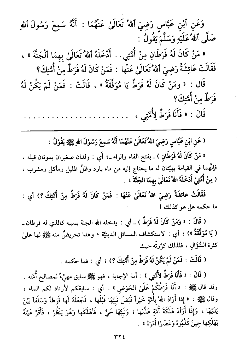 قال: «ومن كان له فرط يا موفّقة» ، قالت: فمن لم يكن له فرط من أمّتك؟