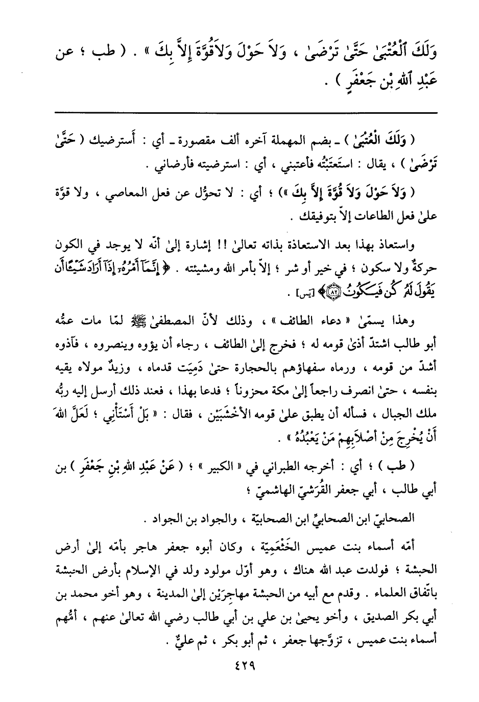 ولك العتبى حتّى ترضى، ولا حول ولا قوّة إلّا بك» . (طب؛ عن عبد الله بن جعفر) .