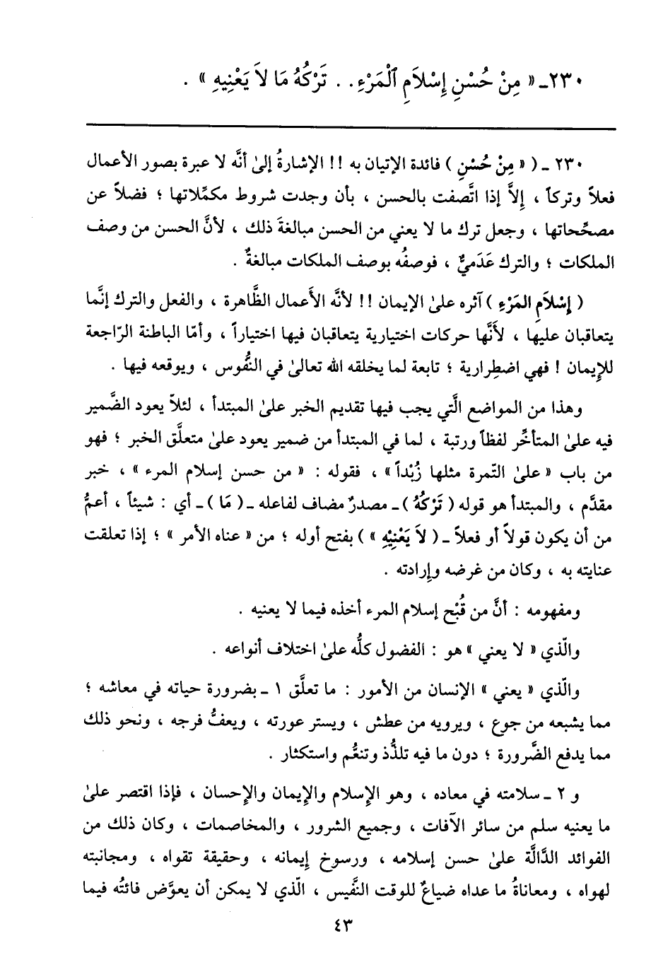 230- «من حسن إسلام المرء.. تركه ما لا يعنيه» .