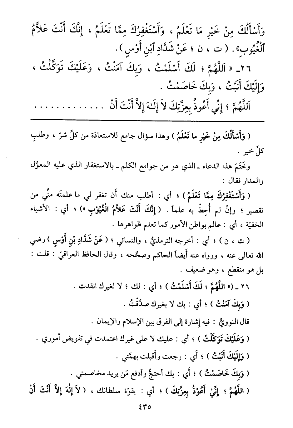 وأسألك من خير ما تعلم، وأستغفرك ممّا تعلم، إنّك أنت علّام الغيوب» . (ت، ن؛ عن شدّاد ابن أوس) .