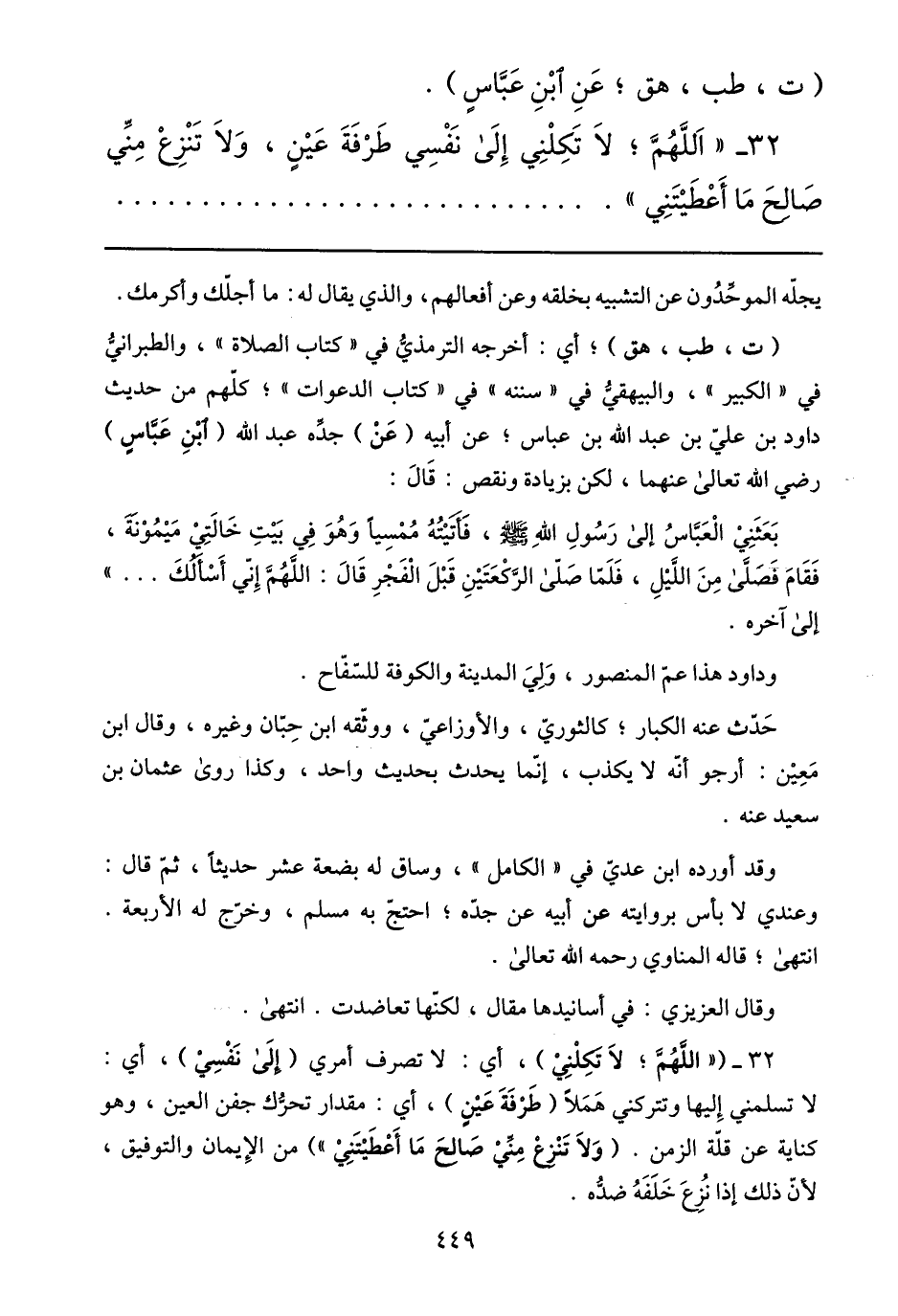 32- ( «اللهمّ؛ لا تكلني) ، أي: لا تصرف أمري (إلى نفسي) ، أي: