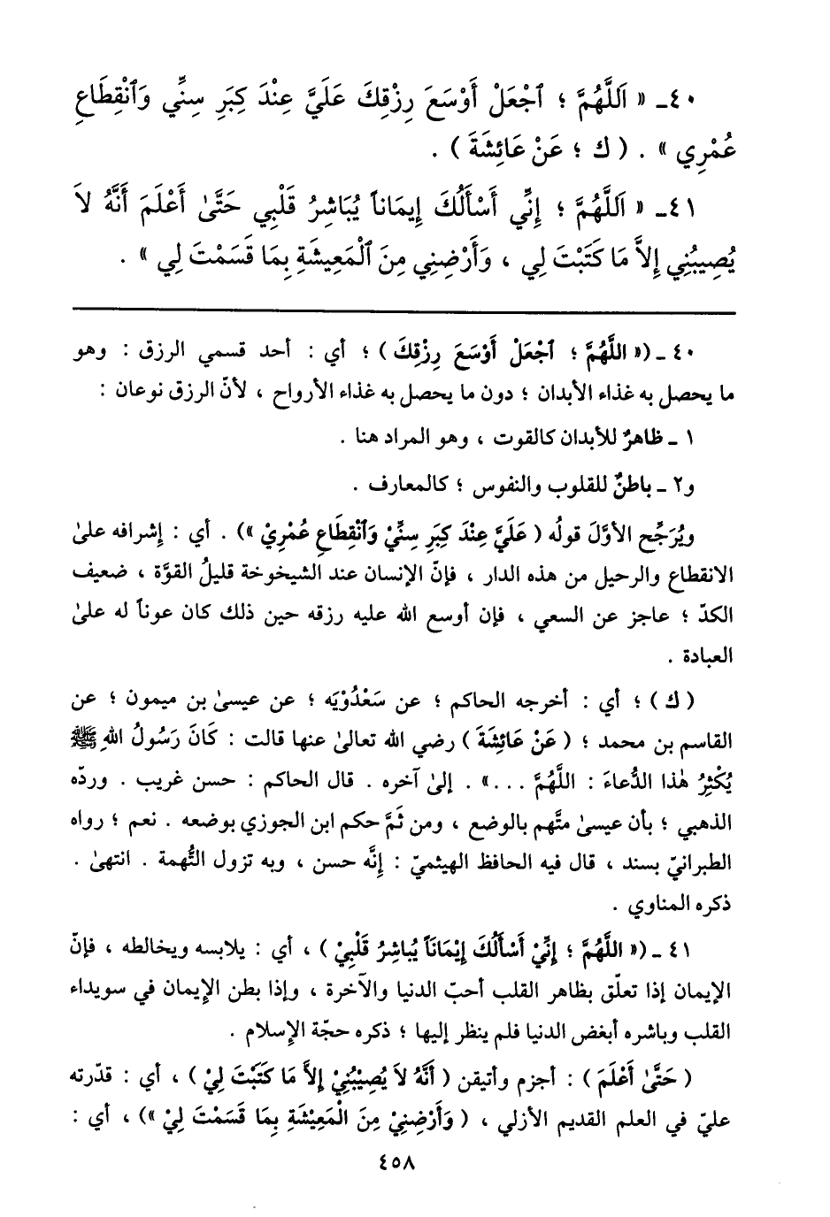 40- «اللهمّ؛ اجعل أوسع رزقك عليّ عند كبر سنّي وانقطاع عمري» . (ك؛ عن عائشة) .