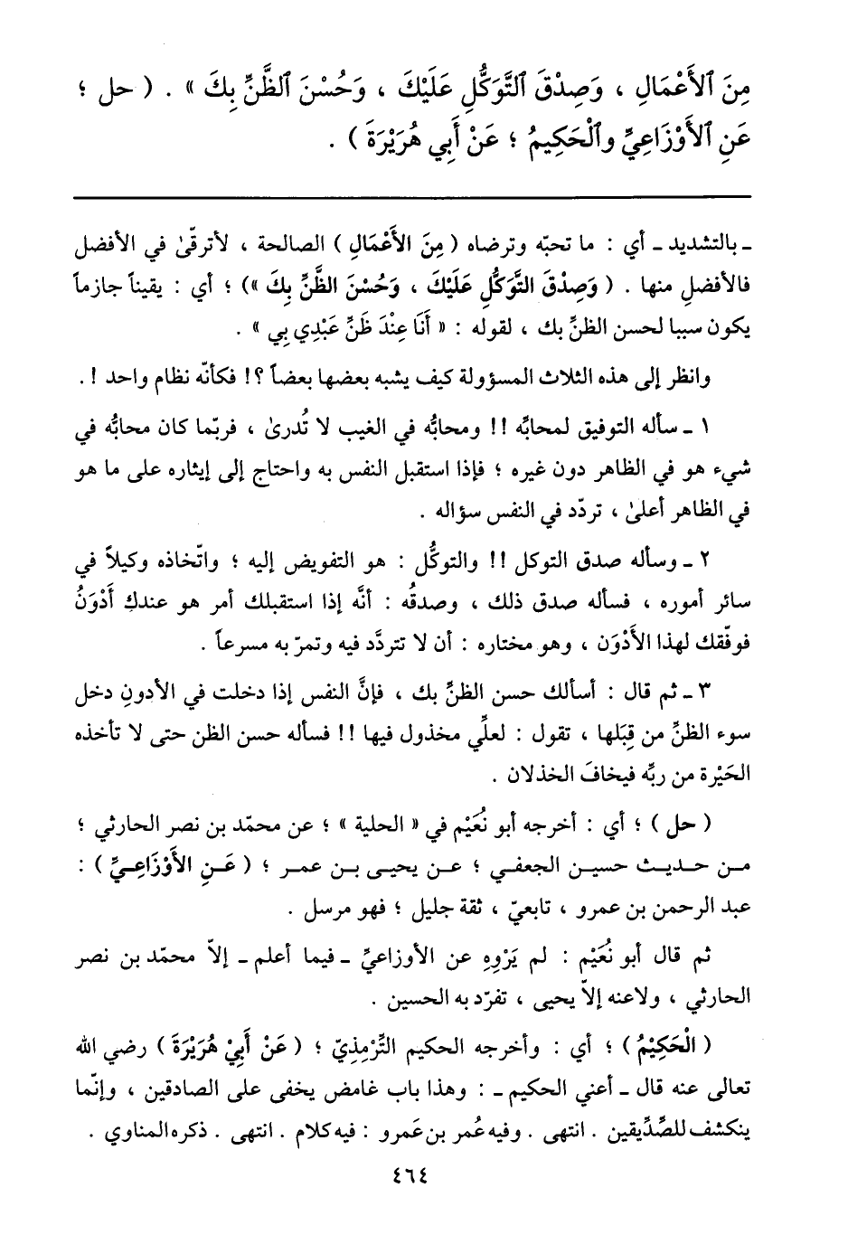من الأعمال، وصدق التّوكّل عليك، وحسن الظّنّ بك» . (حل؛ عن الأوزاعيّ والحكيم؛ عن أبي هريرة) .