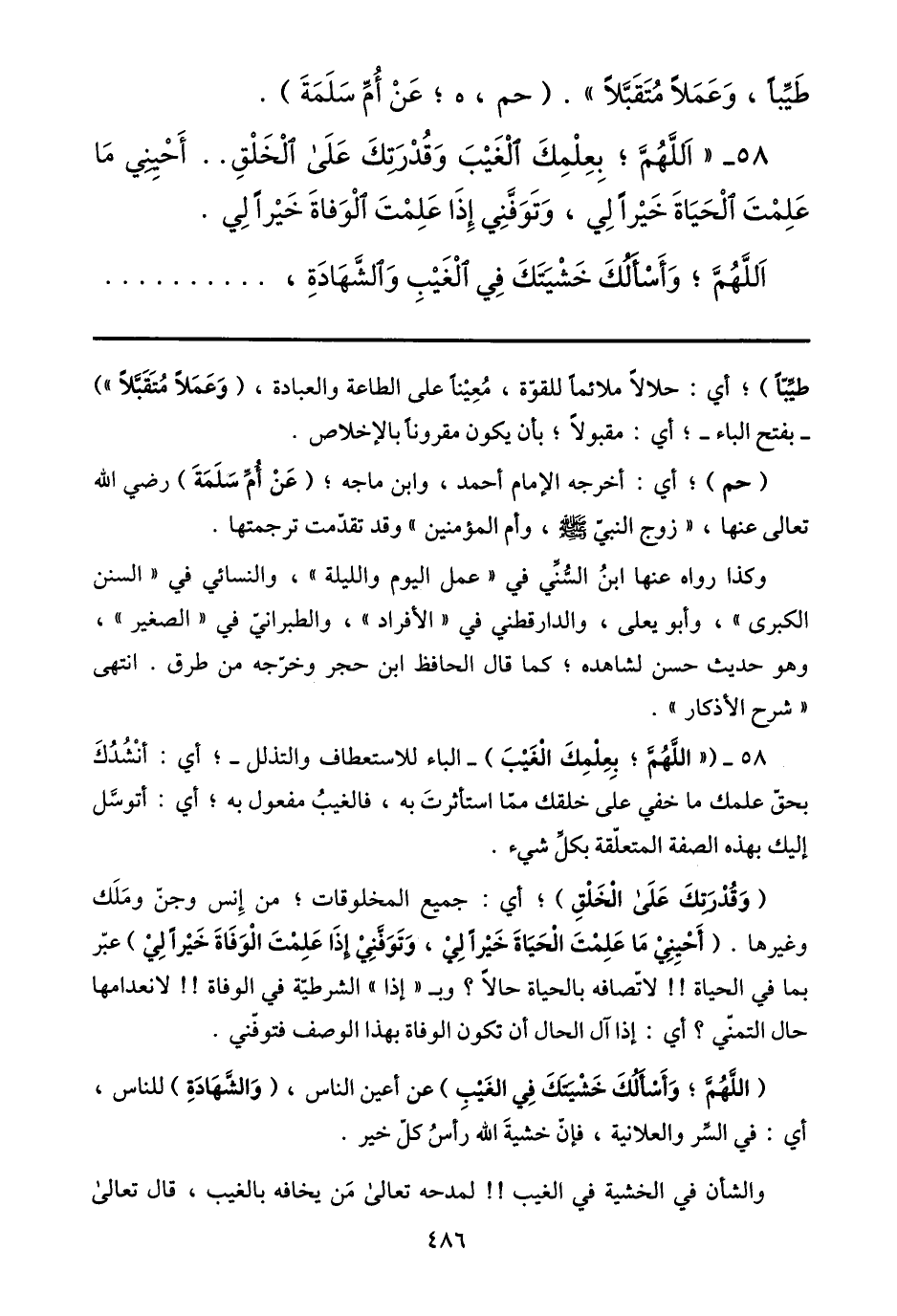 58- «اللهمّ؛ بعلمك الغيب وقدرتك على الخلق.. أحيني ما علمت الحياة خيرا لي، وتوفّني إذا علمت الوفاة خيرا لي.