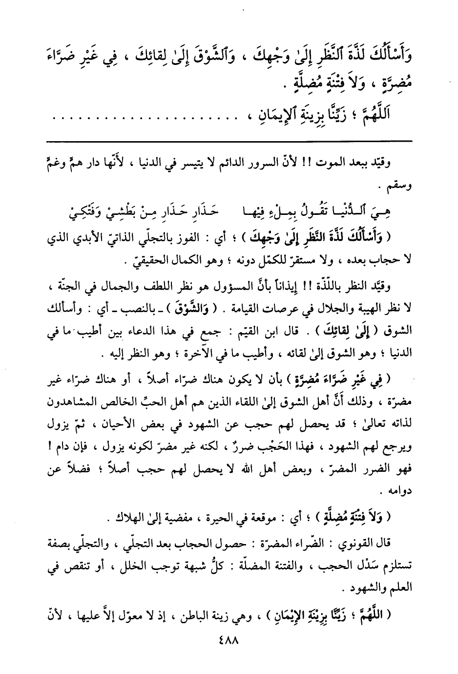 وأسألك لذّة النّظر إلى وجهك، والشّوق إلى لقائك، في غير ضرّاء مضرّة، ولا فتنة مضلّة.