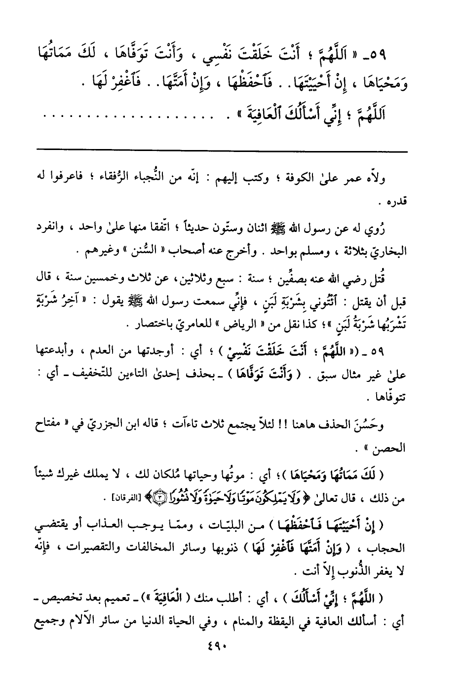 59- «اللهمّ؛ أنت خلقت نفسي، وأنت توفّاها، لك مماتها ومحياها، إن أحييتها.. فاحفظها، وإن أمتّها.. فاغفر لها.