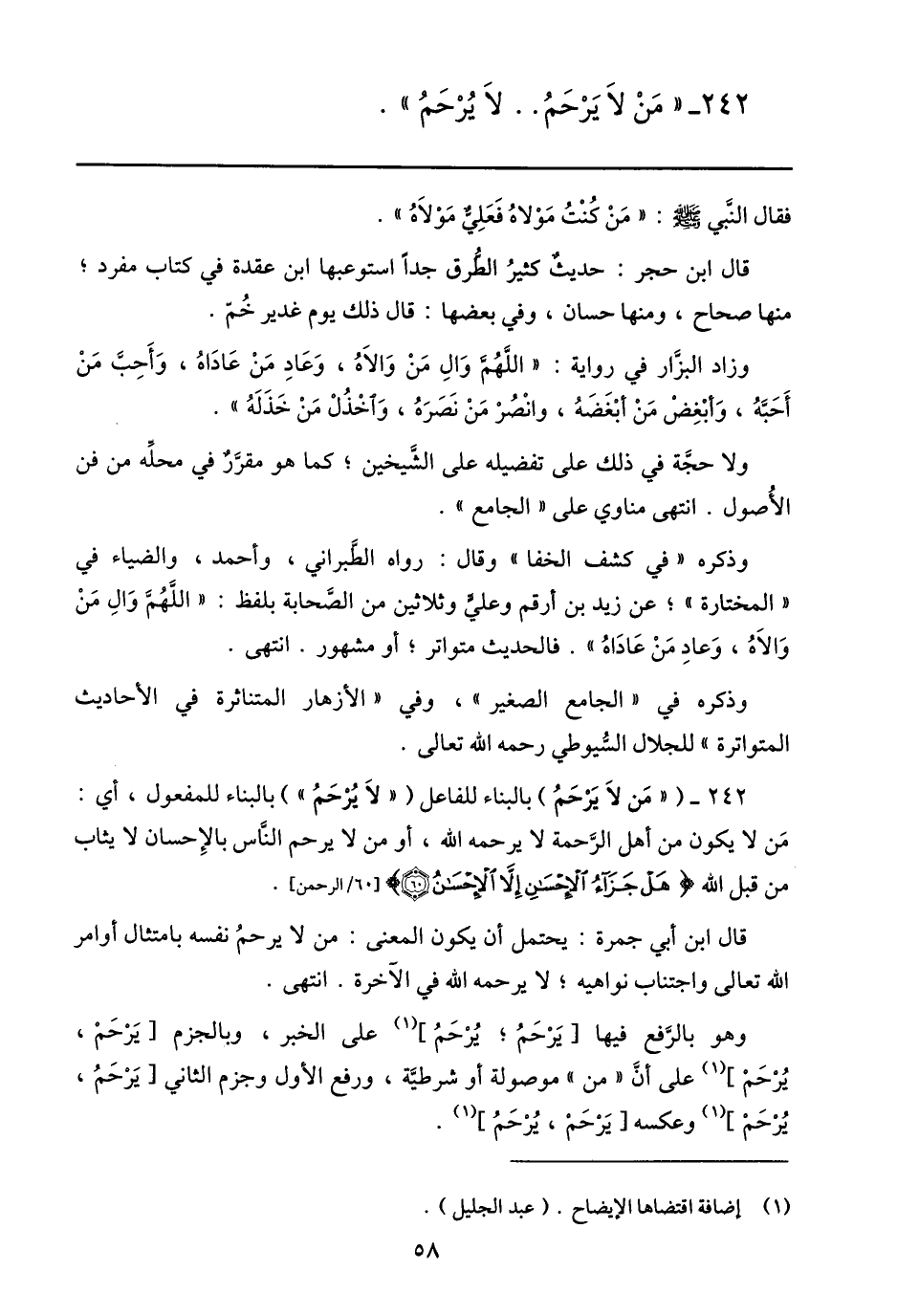 242- ( «من لا يرحم) بالبناء للفاعل ( «لا يرحم» ) بالبناء للمفعول، أي: