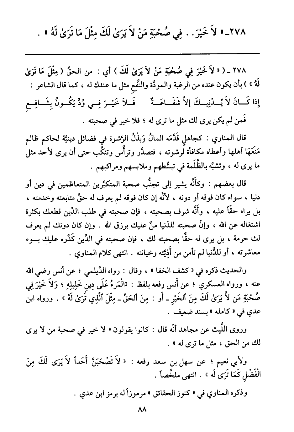 278- «لا خير.. في صحبة من لا يرى لك مثل ما ترى له» .