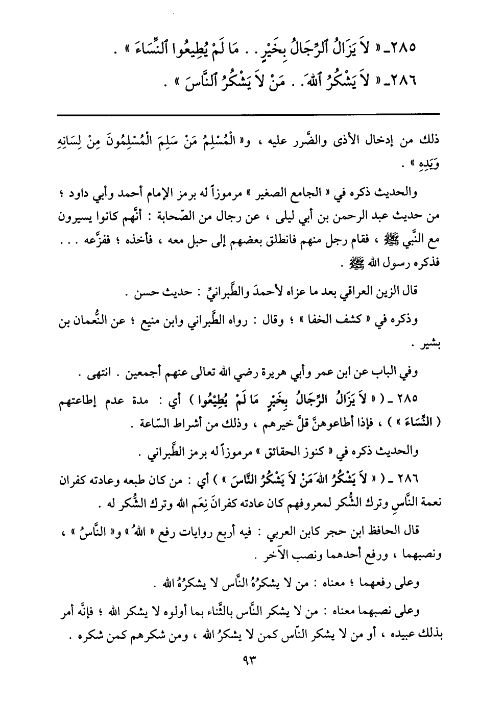 286- «لا يشكر الله.. من لا يشكر النّاس» .