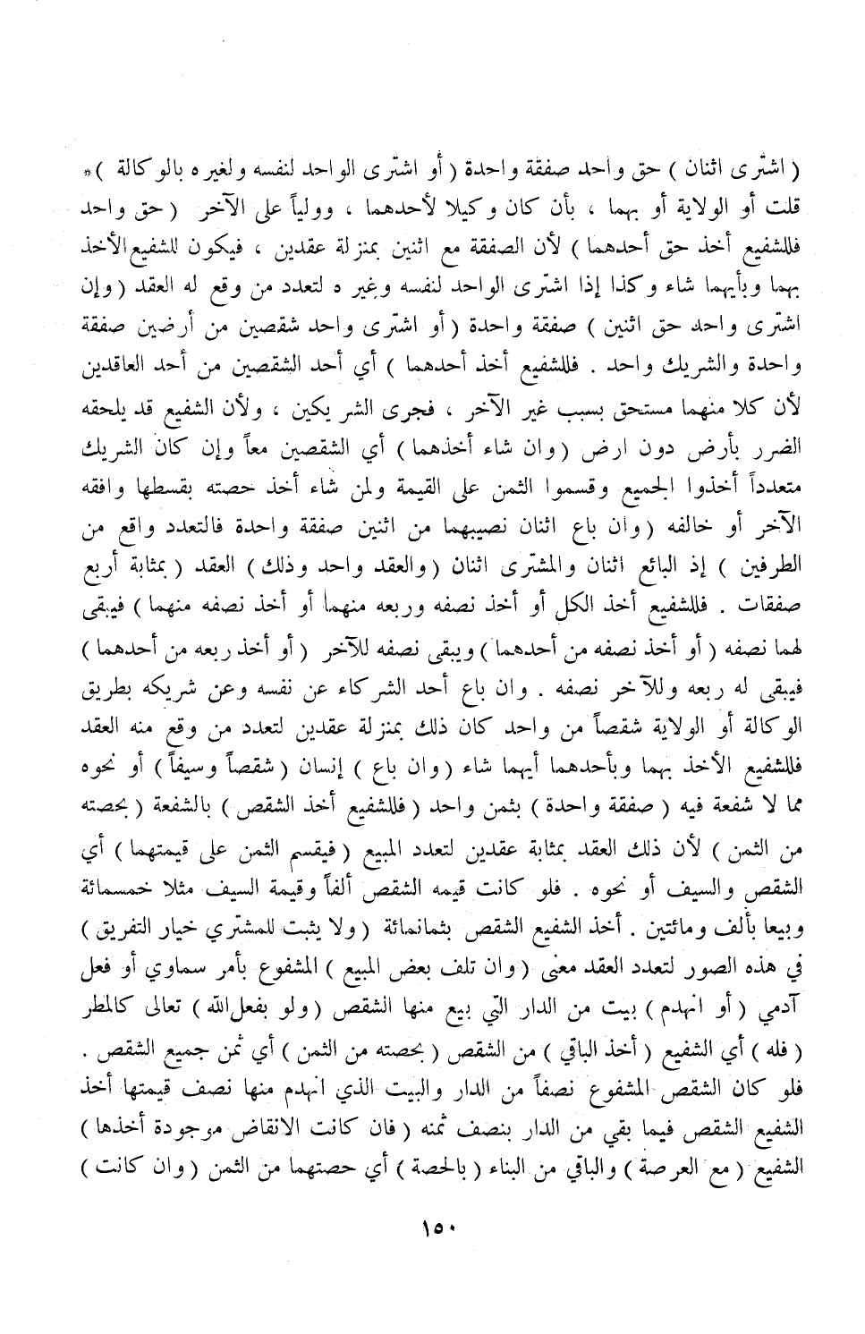 (وَإِنْ بَاعَ اثْنَانِ نَصِيبَهُمَا مِنْ اثْنَيْنِ صَفْقَةً وَاحِدَةً فَالتَّعَدُّدُ وَاقِعٌ مِنْ الطَّرَفَيْنِ) إذْ لِلْبَائِعِ اثْنَانِ وَلِلْمُشْتَرِي اثْنَانِ (وَالْعَقْدُ وَاحِدٌ وَذَلِكَ) الْعَقْدُ (بِمَثَابَةِ أَرْبَعِ صَفَقَاتٍ، فَلِلشَّفِيعِ أَخْذُ الْكُلِّ، أَوْ أَخْذُ نِصْفِهِ وَرُبْعِهِ مِنْهُمَا، أَوْ أَخْذُ نِصْفِهِ مِنْهُمَا) فَيَبْقَى لَهُمَا نِصْفُهُ (أَوْ أَخْذُ نِصْفِهِ مِنْ أَحَدِهِمَا) وَيَبْقَى نِصْفُهُ لِلْآخَرِ (أَوْ أَخْذُ رُبْعِهِ مِنْ أَحَدِهِمَا) فَيَبْقَى لَهُ رُبْعُهُ وَلِلْآخَرِ نِصْفُهُ، وَإِنْ بَاعَ أَحَدُ الشُّرَكَاءِ عَنْ نَفْسِهِ وَعَنْ شَرِيكِهِ بِطَرِيقِ الْوَكَالَةِ أَوْ الْوِلَايَةِ شِقْصًا مِنْ وَاحِدٍ كَانَ ذَلِكَ بِمَنْزِلَةِ عَقْدَيْنِ لِتَعَدُّدِ مَنْ وَقَعَ مِنْهُ الْعَقْدُ فَلِلشَّفِيعِ الْأَخْذُ بِهِمَا وَبِأَحَدِهِمَا أَيُّهُمَا شَاءَ.