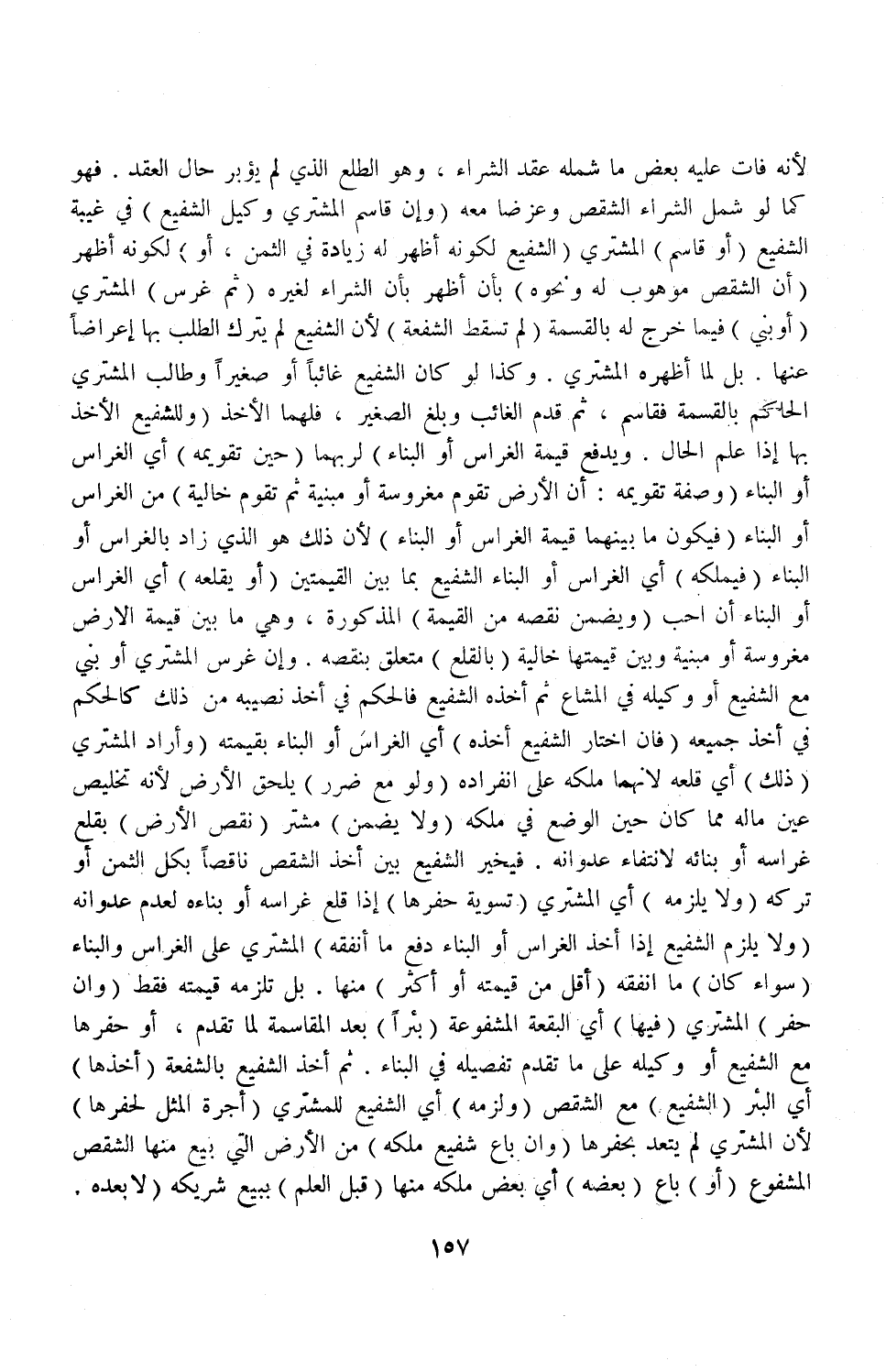 (وَلَا يَلْزَمُهُ) أَيْ: الْمُشْتَرِي (تَسْوِيَةُ حُفَرِهَا) إذَا قَلَعَ غِرَاسَهُ، أَوْ بِنَاءَهُ لِعَدَمِ عُدْوَانِهِ (وَلَا يَلْزَمُ الشَّفِيعَ إذَا أَخَذَ الْغِرَاسَ أَوْ الْبِنَاءَ دَفْعُ مَا أَنْفَقَهُ) الْمُشْتَرِي عَلَى الْغِرَاسِ وَالْبِنَاءِ (سَوَاءٌ كَانَ) مَا أَنْفَقَهُ (أَقَلُّ مِنْ قِيمَتِهِ، أَوْ أَكْثَرُ) مِنْهَا بَلْ تَلْزَمُهُ قِيمَتُهُ فَقَطْ (وَإِنْ حَفَرَ) الْمُشْتَرِي (فِيهَا) أَيْ: الْبُقْعَةِ الْمَشْفُوعَةِ (بِئْرًا) بَعْدَ الْمُقَاسَمَةِ لِمَا تَقَدَّمَ، أَوْ حَفَرَهَا مَعَ الشَّفِيعِ، أَوْ وَكِيلِهِ عَلَى مَا تَقَدَّمَ تَفْصِيلُهُ فِي الْبِنَاءِ، ثُمَّ أَخَذَ الشَّفِيعُ بِالشُّفْعَةِ (أَخَذَهَا) أَيْ: الْبِئْرَ (الشَّفِيعُ) مَعَ الشِّقْصِ (وَلَزِمَهُ) أَيْ: الشَّفِيعَ لِلْمُشْتَرِي (أُجْرَةُ الْمِثْلِ لِحَفْرِهَا) ؛ لِأَنَّ الْمُشْتَرِي لَمْ يَتَعَدَّ بِحَفْرِهَا.