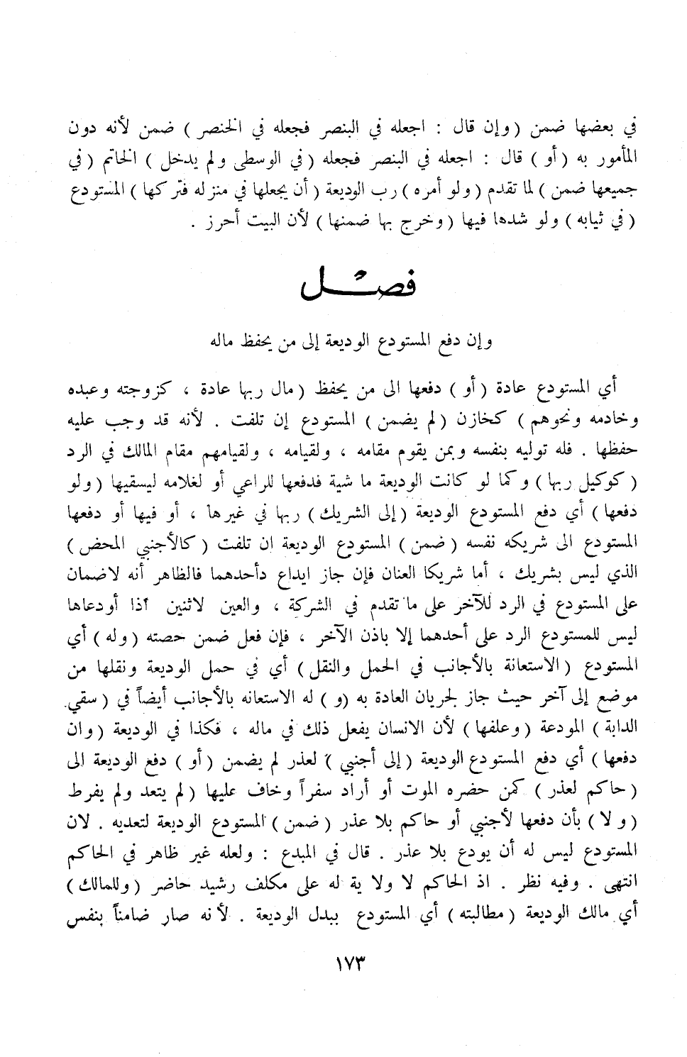 (وَلَوْ دَفَعَهَا) أَيْ: دَفَعَ الْمُسْتَوْدِعُ الْوَدِيعَةَ (إلَى الشَّرِيكِ) رَبِّهَا فِي غَيْرِهَا، أَوْ فِيهَا أَوْ دَفَعَهَا الْمُسْتَوْدِعُ إلَى شَرِيكِهِ نَفْسِهِ (ضَمِنَ) الْمُسْتَوْدَعُ الْوَدِيعَةَ إنْ تَلِفَتْ (كَالْأَجْنَبِيِّ الْمَحْضِ) الَّذِي لَيْسَ بِشَرِيكٍ، أَمَّا شَرِيكَا الْعَنَانِ فَإِنْ جَازَ إيدَاعُ أَحَدِهِمَا فَالظَّاهِرُ أَنَّهُ لَا ضَمَانَ عَلَى الْمُسْتَوْدَعِ فِي الرَّدِّ لِلْآخَرِ عَلَى مَا تَقَدَّمَ فِي الشَّرِكَةِ، وَالْعَيْنُ لِاثْنَيْنِ إذَا أَوْدَعَاهَا لَيْسَ لِلْمُسْتَوْدَعِ الرَّدُّ عَلَى أَحَدِهِمَا إلَّا بِإِذْنِ الْآخَرِ، فَإِنْ فَعَلَ ضَمِنَ حِصَّتَهُ.