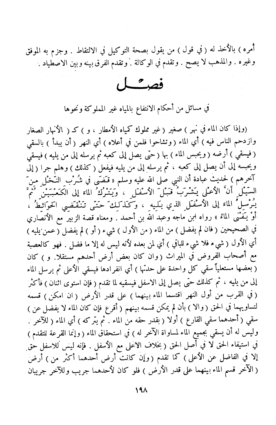 [فَصْلٌ فِي مَسَائِلَ مِنْ أَحْكَامِ الِانْتِفَاعِ بِالْمِيَاهِ غَيْرِ الْمَمْلُوكَةِ وَنَحْوِهَا]